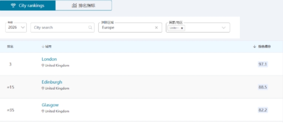 在本次排名中,英國共有 8 座城市躋身全球 TOP50,展現(xiàn)出強(qiáng)勁的留學(xué)吸引力。