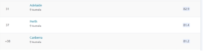 布里斯班(第 26)、阿德萊德(第 31)、珀斯(第 37)、堪培拉(第 38)也憑借各自的教育資源和城市特色,吸引著眾多留學(xué)生。