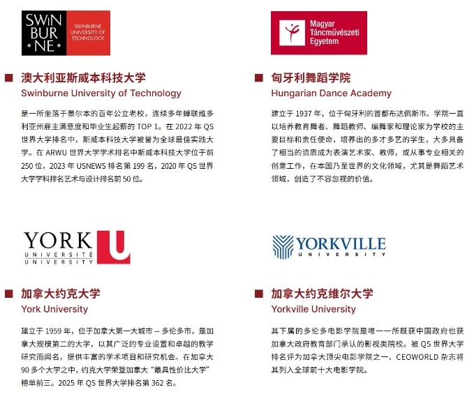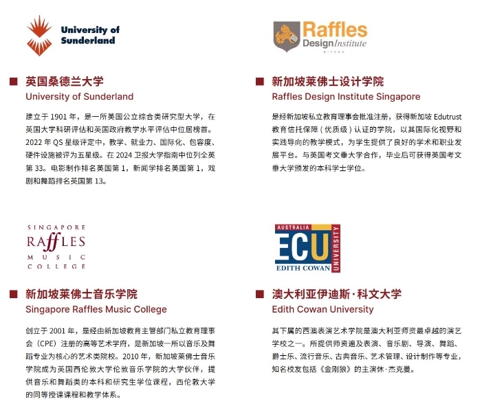 源及雄厚的師資力量,與英國、美國、澳大利亞、加拿大、意大利、日本、韓國、新加坡等數(shù)十個國家及地區(qū)的藝術(shù)領域一流高校建立了長期校際合作關(guān)系。